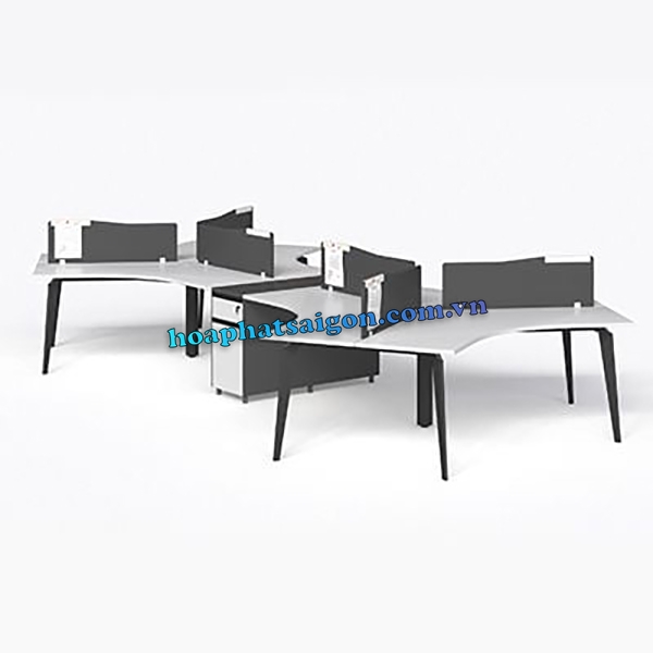 • Cụm bàn làm việc lượn 6 chỗ, chân sắt tạo hình kiểu thanh cài bút, sơn tĩnh điện đen sần hoặc kem, thanh giằng sắt hộp 25×50