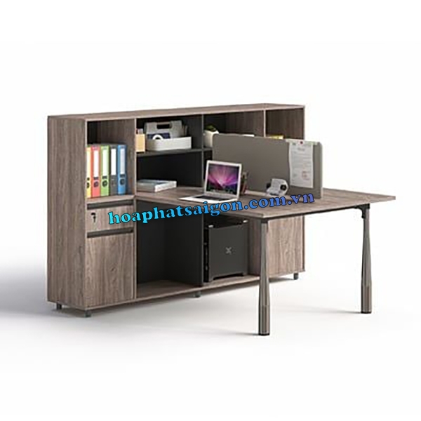 • Cụm bàn làm việc 2 chỗ có tủ phụ liền bàn. Mặt bàn gỗ công nghiệp Melamine