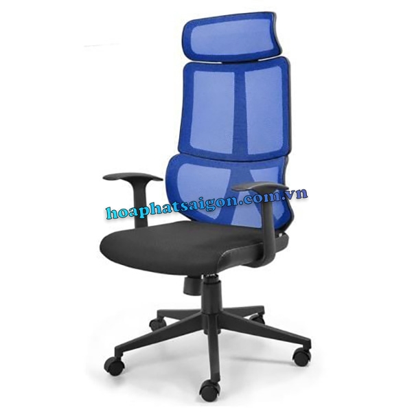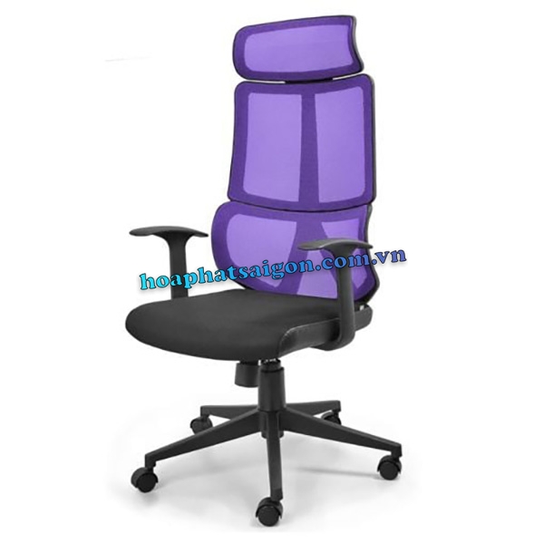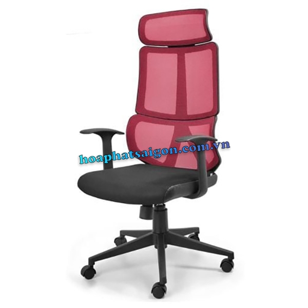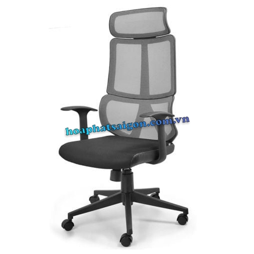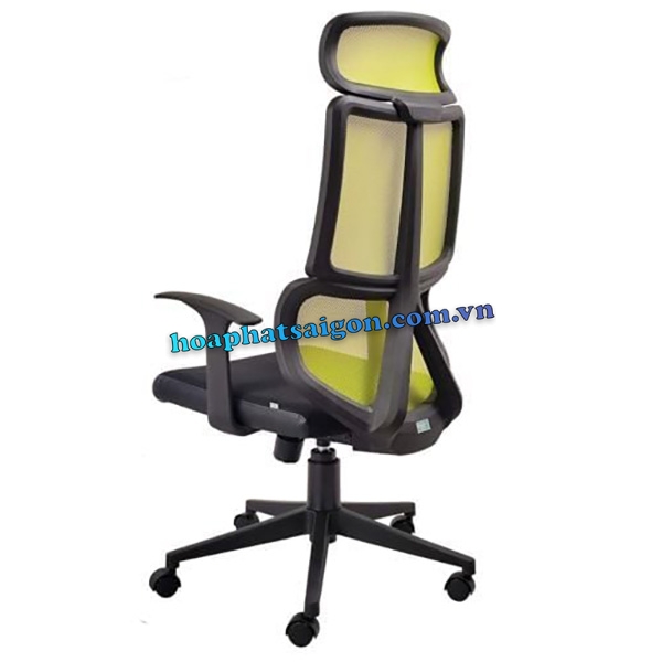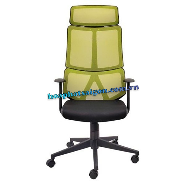 • Ghế xoay lưng trung có tựa đầu, khung nhựa căng lưới, đệm mút bọc lưới viền da.