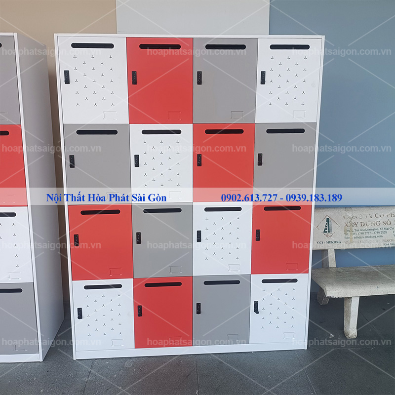 • Tủ sắt sơn tĩnh điện 16 khoang cánh cánh mở.