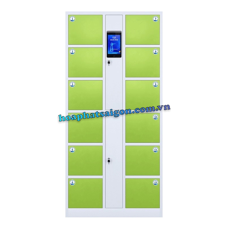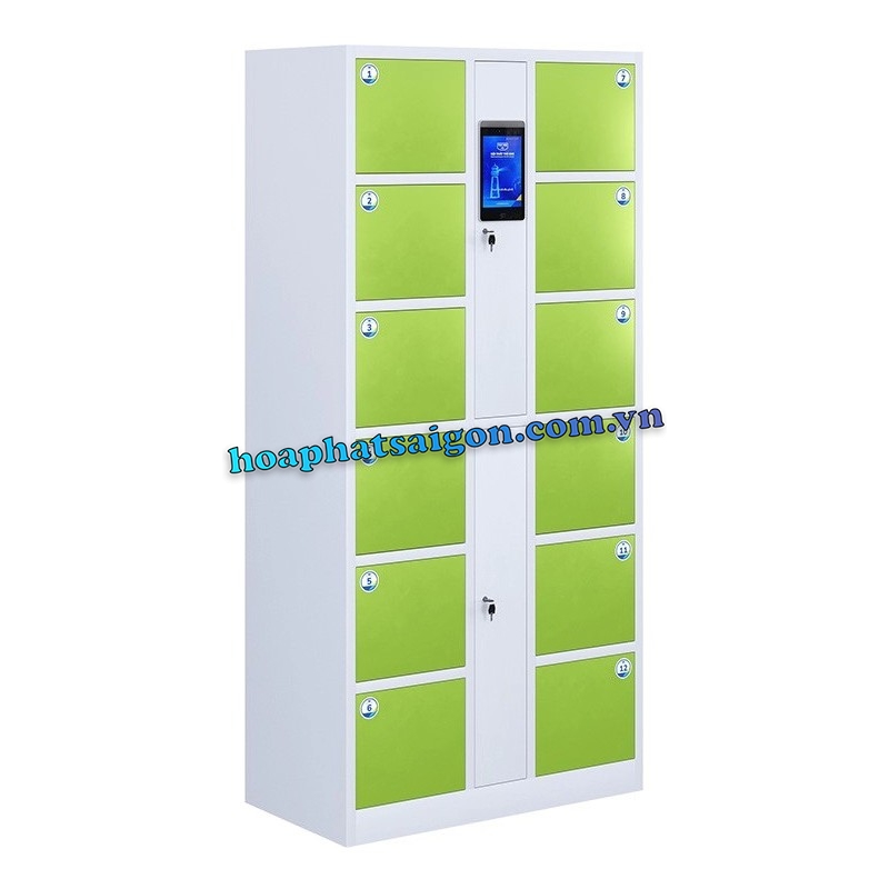 • Tủ locker thông minh gồm 12 ngăn để đồ và khoang kỹ thuật ở giữa