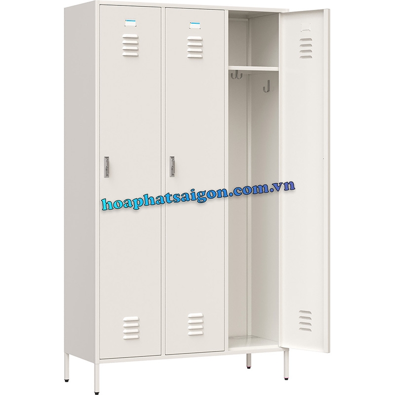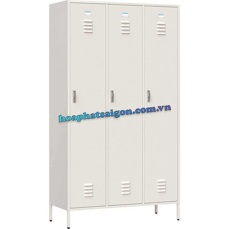 • Tủ locker sắt sơn tĩnh điện màu trắng ngà, thiết kế có 3 khoang cánh mở